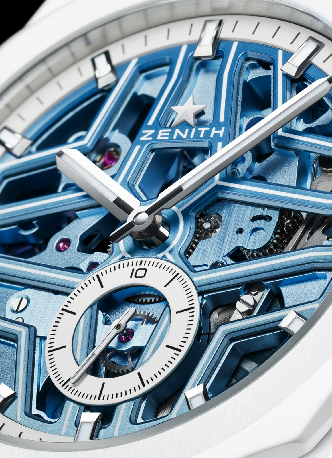 Once again, ZENITH collaborates with Time+Tide, a leading publisher of watch content, to unveil the third and final edition in the “Surfer Trilogy” of watches, the DEFY Skyline Skeleton White Surfer Ceramic. A testament to bold design and innovation, the El Primero 3620 SK automatic movement is visible through the open dial, driving the 1/10th of a second subdial. Continuing the aesthetic of the Surfer editions, the watch retains the blue gradient openwork dial, with a skeletonised movement, for the first time, designed to match the star-shaped bridge, set against a white ceramic case and integrated bracelet in this edition for a summer-ready style.